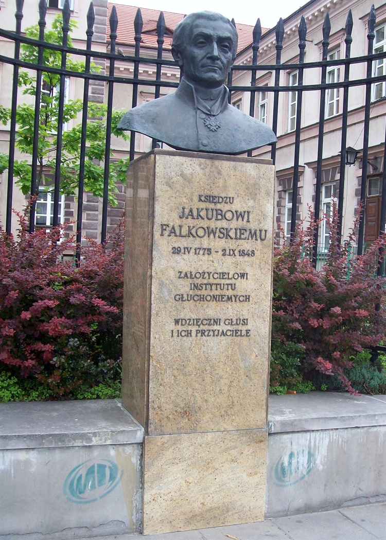 Pomnik ks. Jakuba Falkowskiego znajduje się przy ulicy na Placu Trzech Krzyży przed Instytutem Głuchoniemych. Przedstawia popiersie ks. Jakuba Falkowskiego (1775-1848), kapłana z Zakonu Pijarów, pedagoga i opiekuna głuchoniemych oraz założyciela tutejszego Instytutu, umieszczonego na wysokim cokole. Autorami pomnika są Stanisław Syposz i Ryszard Stryjecki. Uroczyste odsłonięcie i poświęcenie nastąpiło 23 października 2002 roku przez kardynała Józefa Glempa, prymasa Polski.