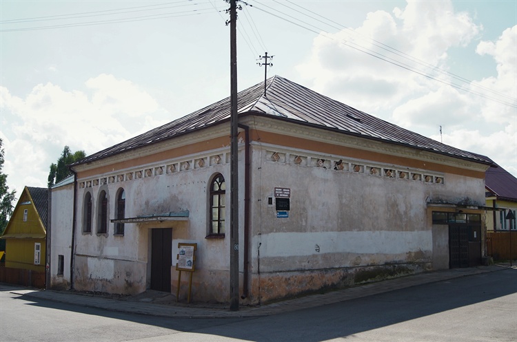 Synagoga znajduje się w centrum miasta, na skrzyżowaniu ulic J. Piłsudskiego i Górnej. Została zbudowana w 1850 roku. Nazwa „Kaukaski Beth Midrasz" pochodzi od kupców, którzy z Kaukazu sprowadzali skóry do miejscowych garbarni. W czasie II wojny światowej budynek uległ poważnym zniszczeniom na skutek dewastacji i pożaru. W 1955 roku obiekt został przebudowany na potrzeby kina, a obecnie mieści się w nim Dom Kultury. Na zewnętrznych ścianach zachowały się architektoniczne elementy charakterystyczne dla bóżnic.