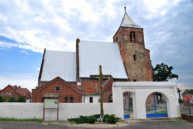 We wsi znajduje się zabytkowy kościół pw. Nawiedzenia Matki Boskiej, który należy do parafii w Rzeczycy. Pierwsza wzmianka dotycząca tej świątyni pochodzi z 1259 roku. Kościół powstał w pierwszej połowie XIII wieku z nakazu księcia głogowskiego na ziemiach majątku rycerskiego. Obecny budynek postawiony został w XV wieku w stylu gotyckim, przy jego budowie wykorzystano mury wcześniejszej świątyni. W czasach reformacji znajdowała się tutaj świątynia protestancka. W okresie wojny 30-letniej kościół został spalony, a nabożeństwa odbywały się na dziedzińcu kościelnym. Od 1654 roku kościół przywrócono katolikom. Dzięki głogowskiemu proboszczowi Leonhardtowi Frommholtowi, który przejął parafię, kościół został odbudowany. Odbudowa trwała około 30 lat, budynek nakryto dachem łupkowym, wewnątrz założono obity deskami strop, nowe okna, położono ceglaną posadzę, a także wybudowany nowy ołtarz. Zakończenie prac opóźniały częste powodzie. W drugiej poł. XIX wieku wznowiono prace budowlane, których efektem są neogotyckie przybudówki – zakrystia oraz kruchta. Wnętrze budynku utrzymane jest w stylu późnego baroku i rokoko. Nawa przykryta jest sklepieniem kolebkowym zawierającym elementy renesansowe z XVII wieku oraz rokokowe z drugiej połowy XVIII wieku. Najcenniejszym zabytkiem znajdującym się w kościele jest rzeźba Matki Boskiej z Dzieciątkiem pochodząca z XIV wieku. Jest to najstarsza zachowana rzeźba tego typu na Ziemi Głogowskiej.