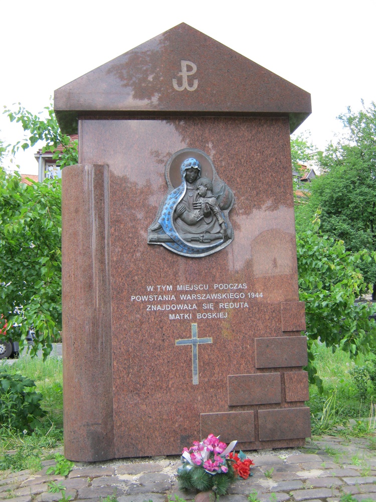 Reduta Matki Boskiej powstała w drugiej połowie sierpnia na tyłach gmachu Hotelu Polskiego przy ulicy Długiej 29. Swoją nazwę zawdzięcza obrazowi Matki Boskiej Jasnogórskiej, który znajdował się na elewacji budynku i pomimo bombardowań hitlerowskich nie uległ zniszczeniu. Powstańcy w tym miejscu bronili się aż do wycofania się kanałami do Śródmieścia w dniu 1 września 1944 roku. Miejsce istnienia Reduty Matki Boskiej upamiętnia obelisk z płaskorzeźbą rannego powstańca w objęciach NMP, który mieści się pomiędzy blokami przy Alejach Solidarności 62A a 64. Postawiony został w 1998 roku.