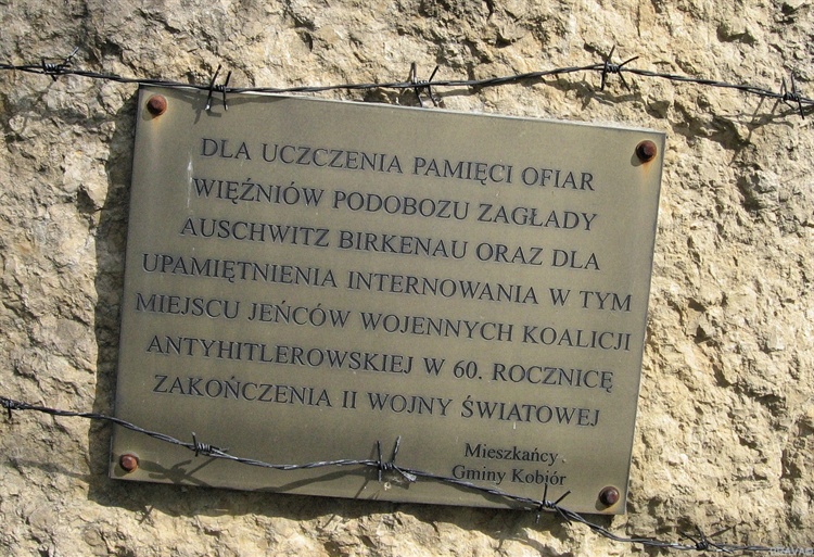 W lasach znajdujących się w miejscowości Kobiór koło Tychów od września 1942 r. do sierpnia 1943 r., w czasie II wojny światowej, funkcjonował Podobóz KL Auschwitz-Birkenau. Teren podobozu był ogrodzony płotem z drutu kolczastego, w narożach mieściły się cztery wieże strażnicze. Wewnątrz ogrodzenia w trzech barakach znajdowało się 150 więźniów, których pilnowało 20 esesmanów. W większości więźniami byli Żydzi różnych narodowości, w tym: Polacy, Francuzi, Belgowie, Holendrzy i Czesi. Zatrudniani byli głównie przy wyrębie lasu, naprawie dróg leśnych, rozbiórce i reparacji starych domów oraz kopaniu rowów melioracyjnych. Z zachowanych dokumentów obozowych wynika, że w miejscu tym zostało zastrzelonych lub zginęło z wycieńczenia co najmniej 21 osób. W 1943 r. podobóz został rozwiązany, a pozostałych przy życiu więźniów przetransportowano do obozu koncentracyjnego w Oświęcimiu. Jesienią 1943 r. w tym miejscu przetrzymywani byli brytyjscy jeńcy wojenni, którzy pracowali w kobiórskim tartaku, a także załadunku drewna na sąsiadującej z nim bocznicy kolejowej. Po podobozie i obozie jenieckim pozostało jedynie szczere pole. Jak wynika z wypowiedzi mieszkańców, zabudowania zostały rozebrane zaraz po wojnie. W miejscu, gdzie znajdowała się brama wjazdowa do podobozu, postawiono obelisk upamiętniający to miejsce.