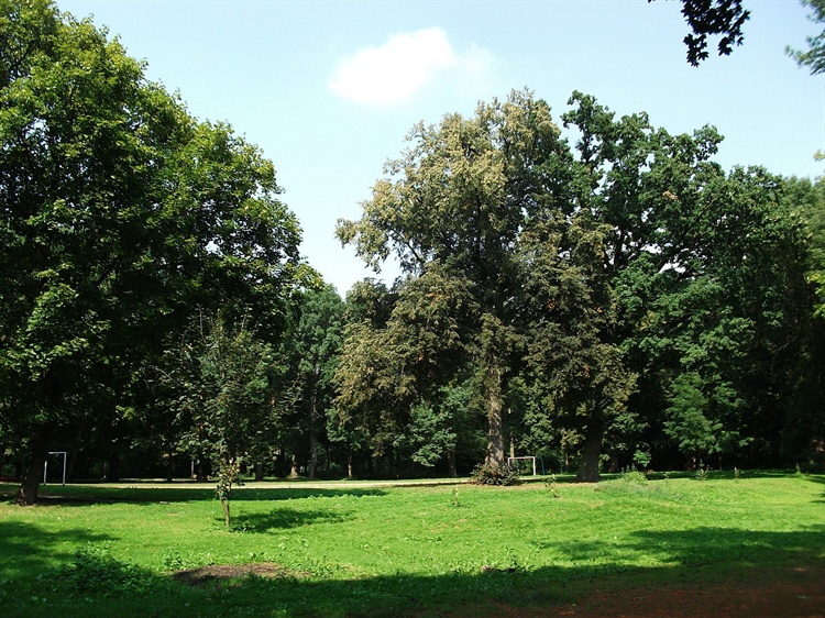 Znajdujący się w Czaczu park krajobrazowy swoje początki miał jeszcze w XVIII wieku. W pierwszych latach wieku XIX ówczesny właściciel Wiktor Szołdrski zainicjował zmiany w założeniu parkowym, które kontynuowali jego następcy Żółtowscy. Park w najlepszym okresie liczył 19,2 ha powierzni, z czego 0,7 ha zajmowały stawy. W części leśnej parku przeważały drzewa liściaste, takie jak graby, dęby, brzozy, jesiony. Część ogrodowa utrzymana była w stylu francuskim. W parku mieściła się również plantacja roślin kwiatowych i bylin. W czasie II wojny światowej park został bardzo zniszczony. Po wojnie zagospodarowano go na potrzeby szkoły, którą ulokowano w pałacu. Z fragmentu terenu utworzono boisko szkolne. Dzisiaj centralną ozdobą parku jest sędziwy platan rosnący pomiędzy pałacem i boiskiem. Park został również przecięty na dwie części przez drogę krajową nr 5.