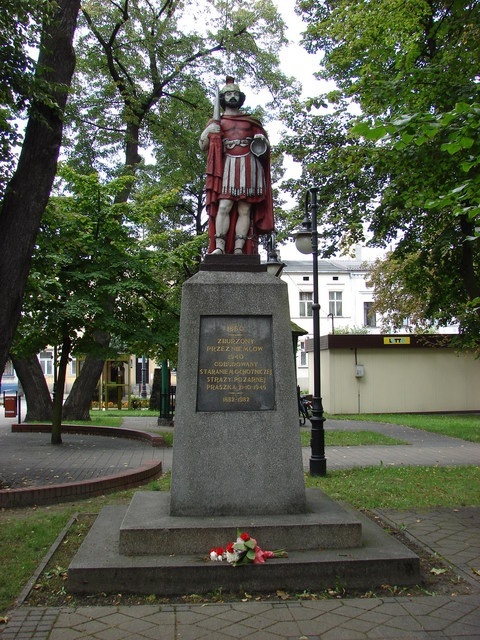 Praszka największy pożar w swojej historii przeżyła w 1852 roku, w wyniku którego prawie doszczętnie spłonęła cała drewniana zabudowa miasteczka. Po tym zdarzeniu mieszkańcy miasta ufundowali i postawili pomnik świętego Floriana, który stanął na rynku miejskim w 1860 roku. Założenie straży pożarnej w Praszce nastąpiło 6 czerwca 1882 roku, w następnym roku liczyła ona 136 członków czynnych, podzielonych na dwa oddziały i osiem pododdziałów. W czasie drugiej wojny światowej okupant niemiecki zniszczył pomnik świętego Floriana - a miało to miejsce w 1940 roku. Zaraz po wojnie, w 1945 roku, pomnik odbudowano dzięki pomocy strażaków z OSP Praszka, zaś w roku 2007 pomnik przeszedł gruntowną odnowę z okazji 125-lecia OSP.