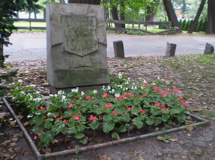 Jest to tablica z piaskowca (zwana też Krzyżem Grunwaldzkim) wolno stojąca na trawniku przy skwerze im. Stefana Kisielewskiego „Kisiela”: „Miejsce uświęcone krwią Polaków poległych za wolność ojczyzny. Tu w dniu 29 września 1944 hitlerowcy rozstrzelali 32 Polaków”. Tablicę ustawiono w latach 50-tych.
