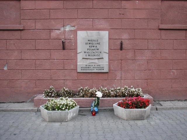 Jest to tablica z piaskowca, która znajduje się na murze budynku przy Alei Solidarności nr 90. Upamiętnia wydarzenia z dnia 16 września 1944 r., kiedy to hitlerowcy rozstrzelali kilkudziesięciu Polaków.
