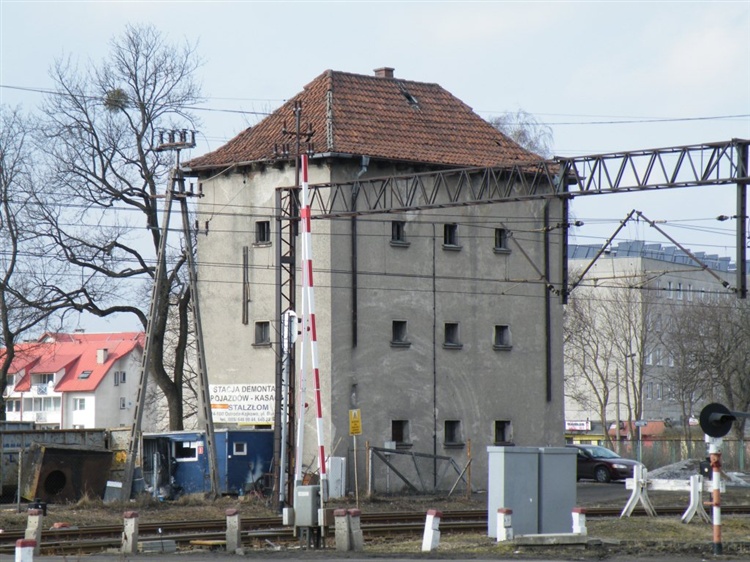Kolejowa wieża ciśnień zbudowana na początku XX w., najprawdopodobniej w roku 1933. Wieza ma około 12 m wysokości i zbudowana została na planie prostokąta o wymiarach 10,31 x 5,80 m. W przyziemiu budynku została zainstalowana przepompownia oraz znajdują sie niewielkie pomieszczenia wykorzystywane jako magazyny. Na najwyższej kondygnacji wieży umieszczono dwa zbiorniki o płaskim dnie, każdy z nich może zmieścić 40 m3. Na ścianie zewnętrznej przymocowany jest listwowy wodomierz. W 1992 r. wieża wpisana została do rejestru zabytków.