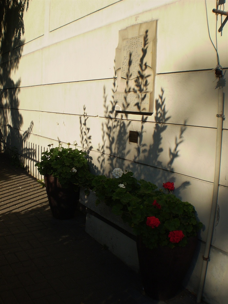 Jest to tablica z piaskowca znajdująca się na bocznej elewacji Domu Handlowego Wilhelma Landaua przy ul. Senatorskiej 38. Upamiętnia wydarzenia z 7 i 14 sierpnia 1944 r., kiedy to Niemcy rozstrzelali 30 osób.