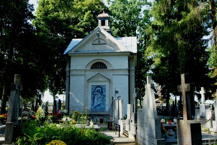 Ta niewielka budowla sakralna, która obecnie pełni funkcję kaplicy cmentarnej, została zbudowana około 1842 roku przez Antoniego Ignacego Szczukę jako kaplica grobowa. Jest to budynek w stylu klasycystycznym na planie krzyża greckiego. W kaplicy znajduje się obraz św. Andrzeja warszawskiego malarza Franciszka Tegazzo. Cmentarz mieści się przy ulicy Sienkiewicza.