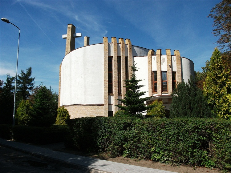 W sąsiedztwie kaplicy z 1786 r. fundacji gen. Józefa Wybickiego zbudowano w 1990 r. nowy kościół pw. Narodzin Najświętszej Marii Panny nawiązujący do niej kształtem. Autorami projektu architektonicznego byli Zygmunt Lutomski i Henryk Wierciński. Otynkowaną na biało świątynię uzupełniają elementy z surowej cegły. Kościół wieńczy krzyż z cegły, obok którego zawieszono dzwon.
