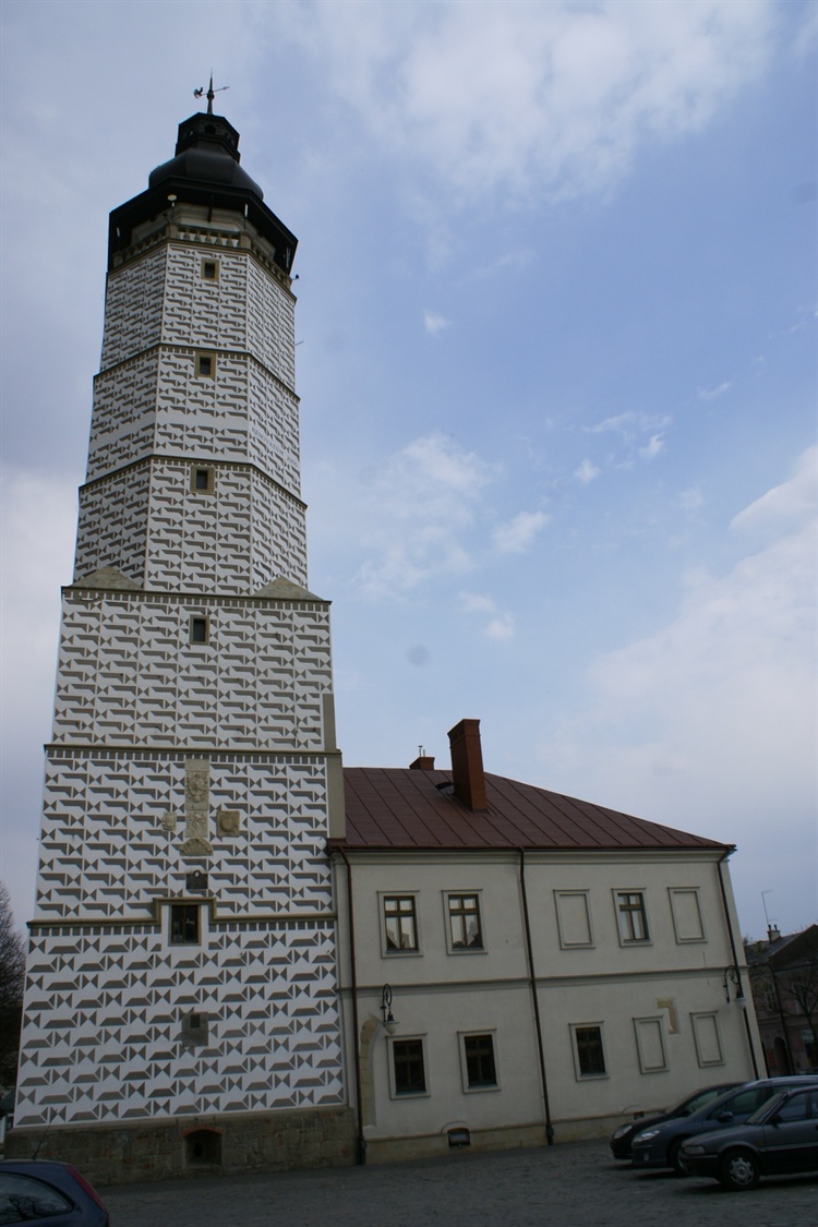 Ratusz zbudowany został w XV wieku w stylu gotyckim. W drugiej połowie XVI wieku dobudowano wieżę wysokości 56 m, którą nakryto barokowym hełmem. Wieża ta została zbudowana w miejscu poprzedniej, która runęła w 1569 roku. Budynek ratusza podlegał licznym przebudowom. Obecna bryła pochodzi z 1830 roku i po licznych przebudowach ostatecznie uzyskała nieco klasycyzujący kształt. Zachodnia ściana ratusza została przyozdobiona orłem zygmuntowskim oraz herbem Ligęzów, starostów bieckich, natomiast na ścianie wschodniej zachowała się XVI-wieczna tarcza zegara z 24-godzinnym podziałem czasu.