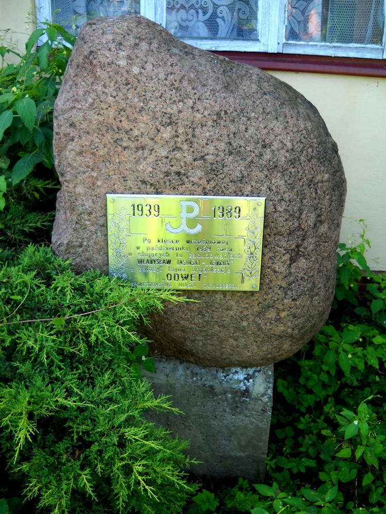 Po klęsce wrześniowej w Tarnobrzegu rozpoczęła się działalność konspiracyjna. Na jej czele stanął nauczyciel Władysław Jasiński. Stworzył młodzieżową Polską Organizację Powstańczą skupiającą uczniów tarnobrzeskich szkół, harcerzy oraz działaczy wiejskich. Początkowo wydawali biuletyny powstałe z nasłuchu "Radia Wolna Europa", publikowane potem jako konspiracyjne pismo "Odwet". Nazwę tę przyjęła również dywersyjna organizacja kierowana przez Jasińskiego. To konspiracyjne ugrupowanie, znane później jako "Jędrusie", powstało w zabudowaniach starej dzielnicy Tarnobrzega - Nadole. Fakt ten upamiętnia głaz i stosowna pamiątkowa tablica.