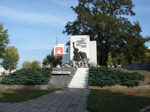 Przy ulicy Podmiejskiej, tuż przy cmentarzu żydowskim, stoi pomnik upamiętniający miejsce, z którego Prusacy ostrzeliwali Kalisz w roku 1914. 28 lipca 1914 roku wybuchła I wojna światowa. Konflikt zbrojny powstał pomiędzy państwami Ententy a Państwami Centralnymi. 1 sierpnia Niemcy wypowiedziały wojnę Rosji. Kalisz był granicznym miastem wojewódzkim w zaborze rosyjskim. Rano rosyjskie wojska, urzędnicy i mieszkańcy cywilni ewakuowali się z Kalisza. Wieczorem tego samego dnia do miasta wkroczyli Niemcy - 5 kompania 155 pułku piechoty z Ostrowa Wielkopolskiego pod dowództwem majora Hermana Preuskera, który objął stanowisko komendanta miasta. W nocy z 3 na 4 sierpnia padł strzał, który wywołał strzelaninę. Prawdopodobnie strzelali do siebie w ciemnościach niemieccy żołnierze. Zginęło dwadzieścia jeden osób cywilnych i sześciu żołnierzy; winą obarczono mieszkańców miasta. Od 4 sierpnia rozpoczął się terror okupanta skierowany przeciw bezbronnej cywilnej ludności Kalisza, który trwał prawie miesiąc. Wycofujący się Niemcy jednocześnie ostrzeliwali miasto z dział ustawionych na okolicznych wzniesieniach od strony zachodniej. Rozpoczęła się paniczna ucieczka kaliszan. Aresztowano i przeprowadzano egzekucje mieszkańców oraz rabowano wszystko, co ich zdaniem miało jakąś wartość; systematycznie podpalali dom po domu. Po 7 sierpnia na miejsce zwolnione przez wycofany z Kalisza II batalion 155 pułku piechoty Hermana Preuskera przybyły oddziały saskie - dwa bataliony dowodzone przez pułkownika Hoffmana, które dalej prowadziły niszczenie miasta. W Kaliszu, w wyniku ostrzału i podpalania, Śródmieście zostało zburzone w 90 procentach; miasto przed wojną liczyło siedemdziesiąt tysięcy mieszkańców, po wojnie pozostało ich tylko pięć tysięcy. Zniszczenie Kalisza w sierpniu 1914 roku było ewenementem w zachodniej Europie. Nikt przecież dotąd nie burzył całych miast. Pomnik został zaprojektowany przez Andrzeja Wiesława Ożminę. Odsłonięty został w 70. rocznicę tych tragicznych wydarzeń, 29 pażdziernika 1984 roku. Pomnik stoi w symbolicznym miejscu; kiedyś znajdowały się tu wiatraki, pod którymi rozstrzeliwano zakładników.
