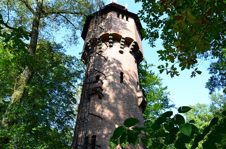 Wieża ciśnień, zwana też wieżą wodną, znajduje się w południowo-wschodniej części katowickiej dzielnicy Giszowiec, u zbiegu ulic Pszczyńskiej i Górniczego Stanu, w jej najwyżej usytuowanej części. Posiada ona zbiornik tłoczny o pojemności 150 metrów sześciennych. Stoi na solidnej kolistej podstawie i ma kształt zwężającego się walca, którego obwód w miarę wnoszenia się ku górze zmniejsza się stopniowo w stosunku do dolnej części, sprawiając wrażenie lekkości całej budowli. Sam pojemnik wodny tworzy bryła o podstawie foremnego ośmiokąta, podpierana przez mocno zaakcentowane wsporniki (konsole). Nad całością pojemnika wznosi się pokryty czerwoną dachówką dach uformowany na kształt namiotu, którego szczyt był niegdyś zakończony latarnią, obecnie - przekaźnikiem telefonii komórkowej. Firma telekomunikacyjna PTK Centertel dostała zgodę na umieszczenie urządzeń w zamian za generalny remont obiektu. Rurociągi uliczne rozprowadzały wodę z wieży do najodleglejszych miejsc wszystkich ulic osiedlowych. Wzdłuż nich, co około 100 metrów, stały ozdobne żurawie wodne, z których mieszkańcy osiedla czerpali wodę. Wszystkie te urządzenia charakteryzowały się doskonałą jakością dzięki ich solidnemu wykonaniu przez Katowitzer Kreiswasserleitung (Katowicki Okręgowy Zarząd Wodociągów). Celem doprowadzenia wody w innej dzielnicy Katowic, w Zawodziu, zamontowano elektryczną pompę, która w połączeniu z ustawioną w kotłowni Giszowca pompą tłoczącą doprowadzała wodę do wieży ciśnień. Z wielu różnych przyczyn do domów robotniczych nie doprowadzono wodociągów, uzyskując w ten sposób znaczne oszczędności w kosztach instalacyjnych i w zużyciu wody. Dzięki temu uniknięto występującego dość często zalewania mieszkań wodą z powodu zdarzających się nieszczelności i pęknięć rur czy też z winy samych lokatorów. Odpadały zatem poważne koszty konserwacji wodociągów. Aby uniknąć wielu uciążliwości związanych z praniem i suszeniem bielizny we własnym domu, zakazano wykonywania tych czynności w mieszkaniach. W tym celu zbudowano dla rodzin osiedlową pralnię. Funkcjonowała także łaźnia dla żon i dzieci robotników oraz dla rodzin urzędników. Górnicy kąpali się na kopalni. Za instalacje wodociągowe spółka Georg von Giesche's Erben zapłaciła 150 tysięcy marek.