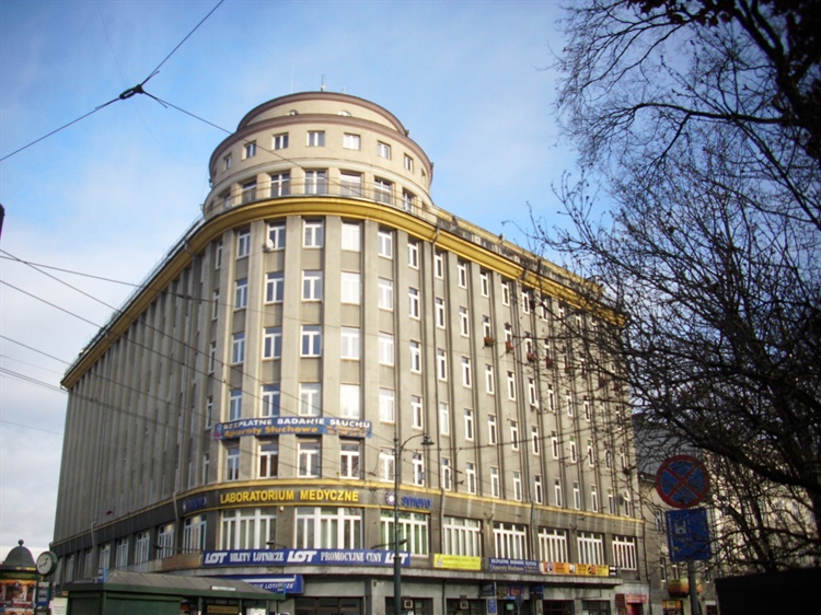 W 1933 roku zakończono budowę późnomodernistycznego gmachu wg projektu Maksymiliana Burstina i Jerzego Struszkiewicza. Jest to siedmiokondygnacyjny budynek zwieńczony dwukondygnacyjną rotundą narożną. Był to najwyższy wysokościowiec w Krakowie mieszczący mieszkania, restauracje, salę kinową. Był siedzibą Towarzystwa Ubezpieczeniowego "Feniks".