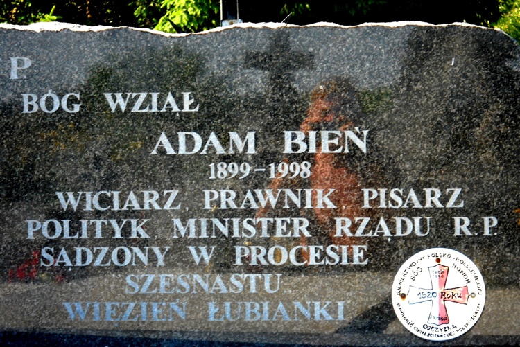Adam Bień urodził się 14 grudnia 1899 roku we wsi Ossala w powiecie staszowskim. Był uczestnikiem wojny polsko-bolszewickiej, prawnikiem i urodzonym społecznikiem. Swoje patriotyczne wychowanie wyniósł z rodzinnego domu oraz z sandomierskiego gimnazjum. W latach 1929-1931 pełnił funkcję prezesa "Wici", organizacji Związku Młodzieży Wiejskiej Rzeczypospolitej Polskiej. Najbardziej aktywny okres działalności społeczno-politycznej Adama Bienia przypadł na okres wojny i okupacji. W marcu 1945 roku Adam Bień, wraz z innymi przywódcami Polskiego Państwa Podziemnego, został podstępnie aresztowany przez NKWD i wywieziony do Moskwy, gdzie został skazany w tzw. "procesie Szesnastu" na pięć lat więzienia. Karę odbywał w katowniach Łubianki. Po przejściu na emeryturę powrócił w rodzinne strony. Zmarł 4 marca 1998 roku i został pochowany na cmentarzu w pobliskim Niekrasowie.