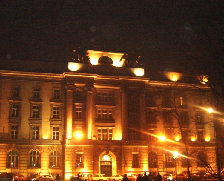 Na Kleparzu do XIX w. istniał kościół św. Krzyża ufundowany przez królową Jadwigę. Kościół ten zburzono z początkiem XIX w. i pan Szczepan Lubowiecki zakupił cegłę pochodzącą z rozbiórki i w tym właśnie miejscu wybudował kamienicę. Od lat 60. XIX w. mieścił się tu Hotel "Lwowski", którego właścicielem był Jan Kanty Lubowiecki. W 1879 r. jego kolejny posiadacz rozbudował go i przekształcił nazwę na "Centralny". Hotel kilka razy zmieniał właścicieli, a w 1910 r. ostatni z nich - Karol Hallenburg Haller - planował budowę nowego obiektu, a konkurs na ten gmach wygrali lwowscy architekci; planów tych jednak nie zrealizowano, gdyż wybuchła I wojna światowa. W 1921 r. Polska Krajowa Kasa Pożyczkowa wzniosła w tym miejscu nowy gmach z przeznaczeniem na siedzibę tymczasowego Banku Emisyjnego - budynek zaprojektował Kazimierz Wyczyński, zaś budowa trwała dwa lata. Tymczasem PKKP została rozwiązana i obiekt przejął Bank Polski. Piękna jest attyka tegoż budynku - znajdują się tu dwie rzeźby Karola Hukana - alegorie Przemysłu i Budownictwa, natomiast od strony Pl. Matejki płaskorzeźba walczących żubrów Stanisława Popławskiego. Przepiękny jest również wystrój budynku, kominki, stiuki oraz liczne dzieła sztuki - Jacka Malczewskiego, Ludwika Pugeta, Piusa Welońskiego, Teodora Axentowicza. W czasie II wojny światowej znajdował się tu Bank Emisyjny w Polsce.