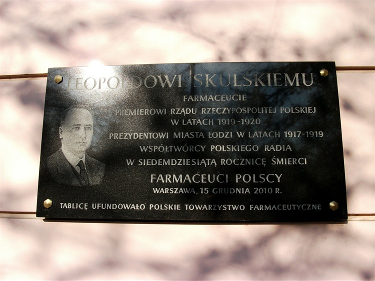 Leopold Skulski (1877 - prawdopodobnie 1940) to polski chemik, farmaceuta oraz polityk. W latach 1917-1919 pełnił funkcję nadburmistrza Łodzi. W okresie od 13 grudnia 1919 do 9 czerwca 1920 r. był premierem rządu niepodległej Rzeczypospolitej. Był współzałożycielem Polskiego Radia Sp. z o.o. powołanej do życia w 1923 r. W 70. rocznicę prawdopodobnej śmierci uczczono Leopolda Skulskiego pamiątkową tablicą na ścianie Bursy przy ulicy Długiej. Jej fundatorem było Polskie Towarzystwo Farmaceutyczne.