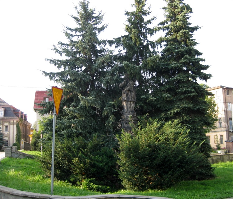W pobliżu mostu na Kamiennej, u wylotu ul. Ściegiennego, stoi otoczona krzewami figura św. Jana Nepomucena. Rzeźbę wykonał w 1712 r. wybitny artysta śląski Jerzy Leonard Weber ze Świdnicy. Rzeźba stoi na dwustopniowym cokole; górną część ufundował hrabia von Schaffgotsch, a dolną część w 1758 r. kasztelan poznański i starosta wschowski hrabia Rafał Gurowski (wg napisu „Comes Gurowski – Gente Polonus”). Tenże szlachcic uwiecznił się w Cieplicach jeszcze inną fundacją. Gdy w czasie kuracji zmarł jego przyjaciel Kazimierz Jaraczewski, zamówił epitafium z kunsztownym łacińskim napisem. Płyta ta znajduje się w krużganku dawnego klasztoru.