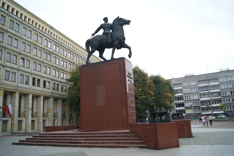 Trzeba jeszcze dodać, iż plac, gdzie stoi pomnik zacnecnego Marszałka, nosi nazwę Króla Bolesława Chrobrego, na którym to placu do roku 1940 stał ukończony w 1939 roku nowoczesny na ówczesne czasy budynek Muzeum Śląskiego. Niedoczekał otwarcia, gdyż w wyniku decyzji niemickich władz okupacyjnych Muzeum rozebrano. Po wojnie został po nim strop między kondygnacyjny między piwnicą, a parterem, który to również rozebrano, a w tym miejscu dziś stoi dzisiejsza siedziba m.in. części Urzędu Wojewódzkiego, a dawna siedziba m.in. Związków Zawodowych, za czasów PRL i redakcji "Sprawy Chemików".