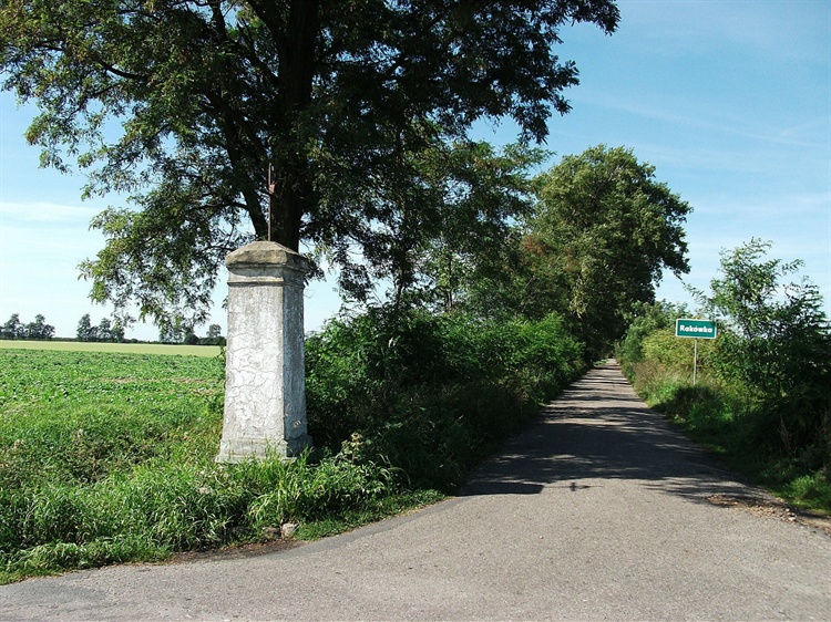 Na rozstaju dróg w pobliżu niewielkiej miejscowości Rakówka, pośród pól, a na początku alei prowadzącej do założenia dworskiego, stoi przydrożny krzyż. Murowany, czworokątny słup zwieńczony jest metalowym, ciekawym krzyżem. Kapliczka pochodzi z drugiej połowy XIX wieku.