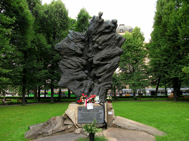 Odsłonięty w 60. rocznicę napaści sowieckiej na Polskę (17.09.1999) pomnik znajduje się w centralnej części ogrodu zamkowego. Pierwotnie miał powstać na skwerze za Teatrem Wielkim. Autorem postumentu jest Robert Sobociński, który przedstawił w nim wyciągnięte ciała uformowane w kształcie korony drzewa, nawiązując symboliką do lasu i ekshumacji ofiar mordu.