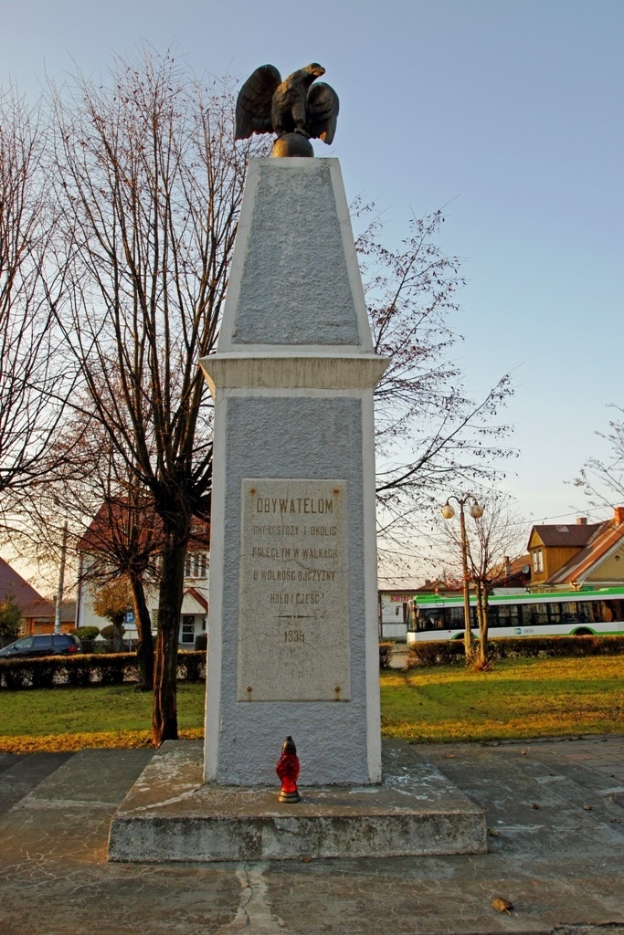 Pomnik stanął w centrum Choroszczy przy Placu 11 Listopada. Przedstawia orła zrywającego się do lotu na kolumnie z tablicą pamiątkową. Na tablicy widnieje napis: "Obywatelom Choroszczy i okolic poległym w walkach o wolność Ojczyzny. Hołd i Cześć! 1934".