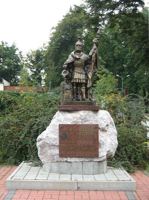Pomnik św. Floriana - patrona strażaków - stoi tuż koło strażnicy PSP w Rawiczu przy ul. Scherwentkego 13, a odsłonięto go w maju 2007 roku. Na tablicy umocowanej do głazu narzutowego, który jest postumentem figury, wyryta jest stosowna treść: "Święty Florianie, my ratujemy,Ty nas chroń - Strażacy Ochotniczej Straży Pożarnej w Rawiczu 12.06.1864-17.05.2007". Z daty na tablicy można się dowiedzieć, że to już 145. rocznica istnienia tej jednostki w Rawiczu. Święty Florian przedstawiany jest jako rzymski rycerz w zbroi i hełmie z naczyniem z wodą do gaszenia ognia.