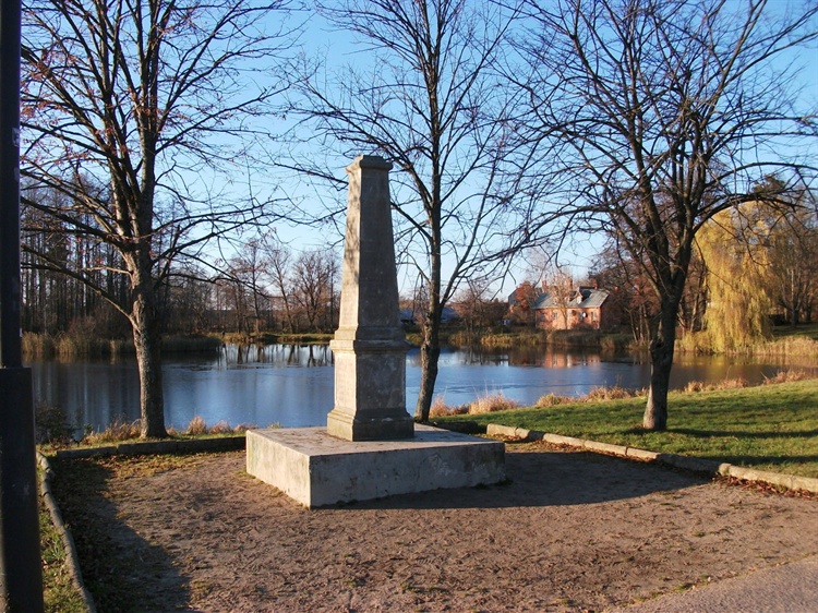 Z centrum Białowieży do zespołu pałacowo-parkowego prowadzi grobla ze ścieżką spacerową. Przy niej znajduje się najstarszy zachowany zabytek miejscowości - obelisk upamiętniający polowanie Augusta III Sasa z rodziną i dworem w 1752 r. Na obelisku znajduje się napis: "Dnia 27 Septembra 1752 Najaśniejsze Państwo August III Król Polski Elektor Saski, z Królową Jeymością i Królewiczem ichmościem Xawerem i Karolem tu mieli polowanie żubrów i zabili: 42 żubry, to jest 11 wielkich, z których nayważniejszy ważył 14 cetnarów 50 funtów, 7 mniejszych, 18 żubrzyców, 6 młodych, 13 łosiów, to jest 6, z których nayważniejszy ważył 9 cetnarów 75 funtów, 5 samic, 2 młodych, 2 sarn. Suma 57 sztuk". Z grobli rozciąga się widok na stawy parkowe oraz zespół zabudowań pałacowych.