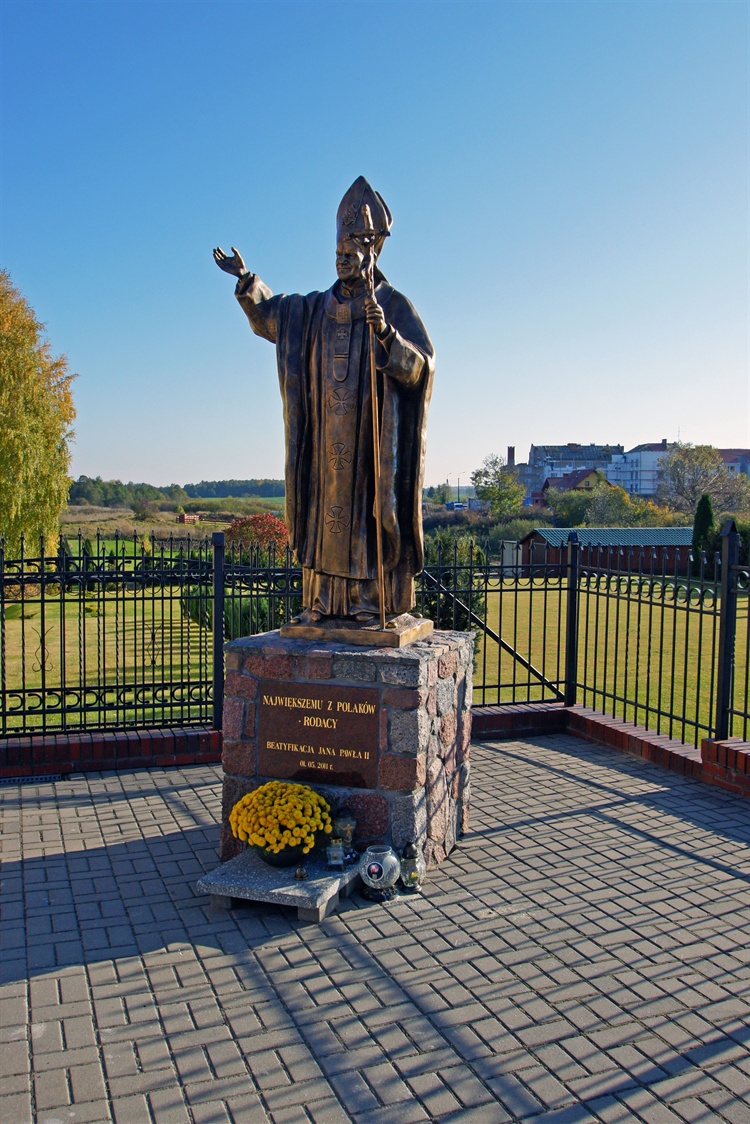 Pomnik Jana Pawła II odsłonięto w maju 2011 roku z okazji beatyfikacji polskiego papieża. Stanął przy kościele pw. Niepokalanego Poczęcia NMP. Na pomniku widnieje napis: "Największemu z Polaków. Beatyfikacja Jana Pawła II 01.05.2011".