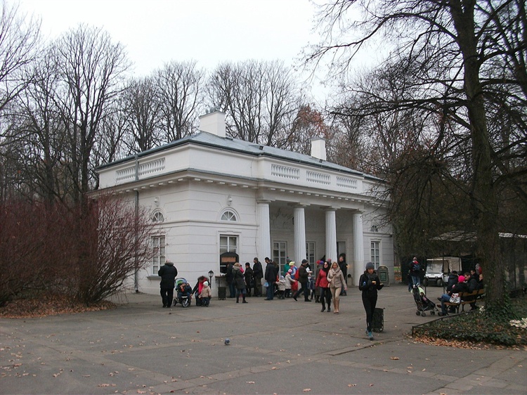 Po zachodniej stronie od Pałacu Na Wodzie położony jest niewielki, biały budynek nazywany Nową Kordegardą. Jest to zbudowany w latach 1779-1780 według projektu Dominika Merliniego pawilon, który służył rozrywce. Grano w nim we francuską grę Trou-Madame polegającą na wrzucaniu kul do numerowanych bramek. W 1782 r. budynek zaadaptowano na teatr nazwany Małym lub Komedialnym, który działał do oddania nowej sceny w Pomarańczarni. Obecny, klasycystyczny kształt budynkowi nadał Jakub Kubicki w 1830 r. Po opuszczeniu pomieszczeń przez teatr funkcjonował tutaj magazyn rzeźb.