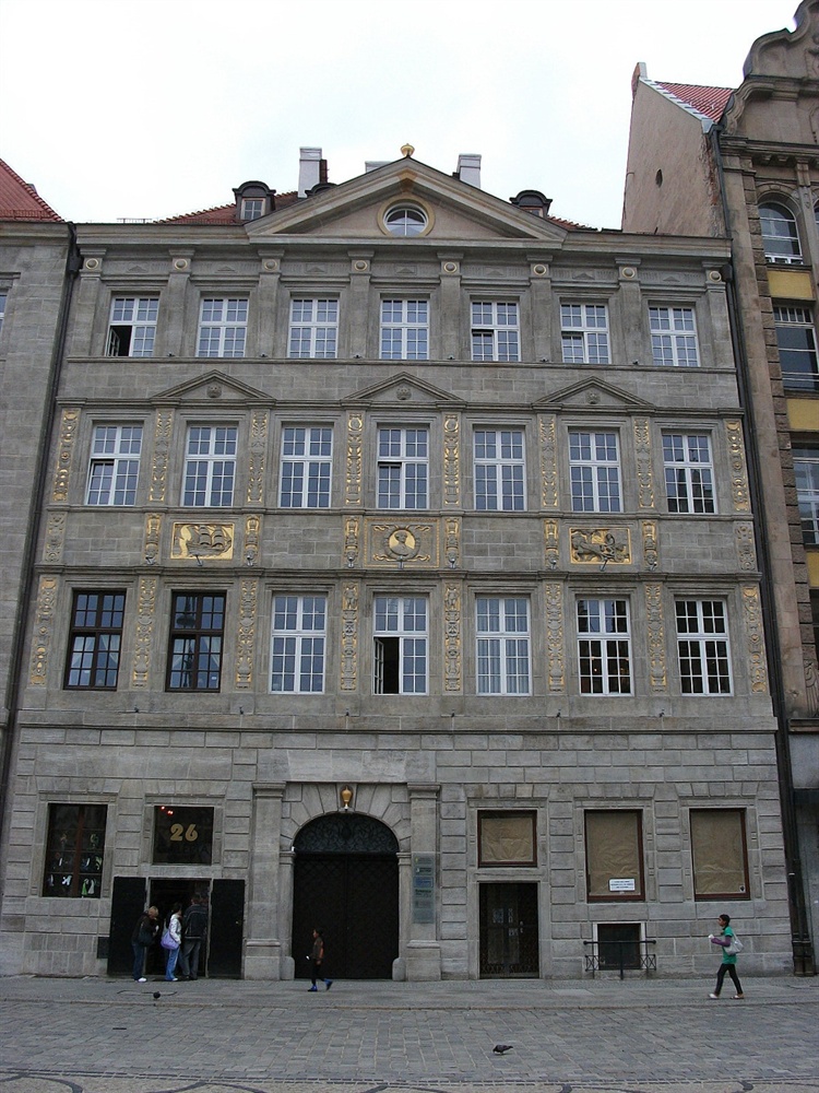 W miejscu kamienicy Pod Złotym Pucharem najprawdopodobniej stały w średniowieczu dwa gotyckie domy. Od końca XV wieku należała ona do rodziny Becherów, która dokonała połączenia wcześniejszych budynków. Ostateczny jej wygląd ukształtował się około 1910 r. po kolejnej modernizacji. Kamienica zyskała klasycyzujące detale w elewacji, zachowała jednak kilka historycznych elementów, m.in. portal w sieni z ok. 1600 r. oraz kamienny relief z 1529 r. z wizerunkiem Chrystusa Męża Boleści.