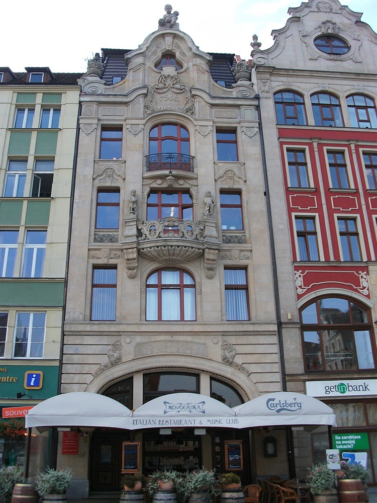 W Pierzei Złotego Pucharu wrocławskiego rynku zwraca uwagę piękna rokokowo-secesyjna kamienica oznaczona numerem 13. Kamienica szczęśliwie przetrwała walki o miasto w 1945 r. Budynek zaprojektował dla finansowej firmy E. Perls & Co Bankgeschäft znany wrocławski architekt Alvin Wedemann. Budowę ukończono w 1903 r., co dokumentuje data w kartuszu znajdującym się powyżej trzeciego piętra. Piskowcową fasadę wieńczy szczyt z postacią dziecka.