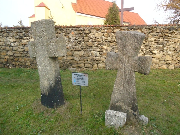 W Starym Jaworowie koło Świdnicy, przy kościele, stoją dwa średniowieczne, kamienne krzyże pokutne. Jeden jest z rytem noża, co oznacza, że morderca zabił ofiarę właśnie za pomocą tego narzędzia zbrodni.