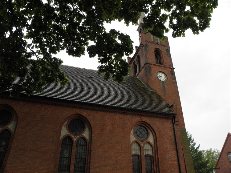 Świątynia istniała tutaj już w czasach średniowiecznych, ale w XIX w. została rozebrana i na jej miejscu w 1898 r. wybudowano z cegły nowy kościół. Wzniesiony został na niewielkiej górce w popularnym wtedy stylu neogotyckim. Jest orientowany, założony na planie prostokąta o wymiarach zbliżonych do 22 m x 12,5 m. Jego bryła o zróżnicowanych wymiarach dominuje nad miejscowością. Budowlę przykryto dachem trójspadowym. Prezbiterium jest niższe od korpusu głównego, a zakrystia ma połowę wysokości prezbiterium. Nad całością góruje wieża z zegarem i strzelistą sygnaturką. W jednym z narożników rzuca się w oczy cylindryczna baszta. We wnętrzu zachowały się dziewiętnastowieczne ławki i empora chórowa z prospektem organowym, neogotycka chrzcielnica, dwa wiszące świeczniki oraz - w oknie prezbiterium - witraż z postacią Chrystusa.