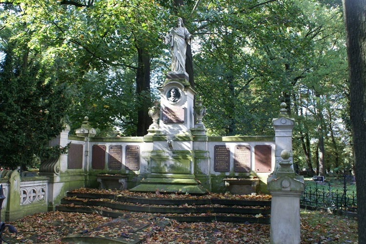 Niewątpliwie największy grobowiec na cmentarzu w kształcie niewielkiego neogotyckiego kościoła posiada rodzina Scheiblerów. Bardzo interesujące są również monumentalne grobowce (mauzolea) przemysłowców Geyerów, Grohmanów, Kindermannów czy Kunitzerów.