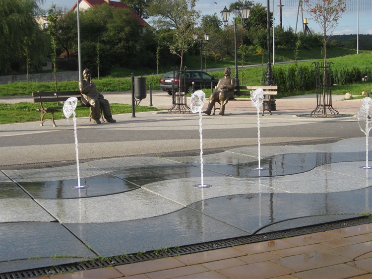Na placu przy ul. Wolności, który był kiedyś własnością Państwowego Przedsiębiorstwa Hodowlanego, utworzono deptak z ławeczkami i fontannami. Uroczyste uruchomienie fontann odbyło się 8 października 2010 r. Fontanny pracują w kilkunastu programach wodno-świetlnych i w upalne dni są dużą atrakcją dla biegających dookoła nich dzieci. Wokół fontann stoją ławeczki, a na dwóch z nich przysiedli dobrze nam znani z literatury czeski wojak Szwejk oraz nasz Zagłoba.