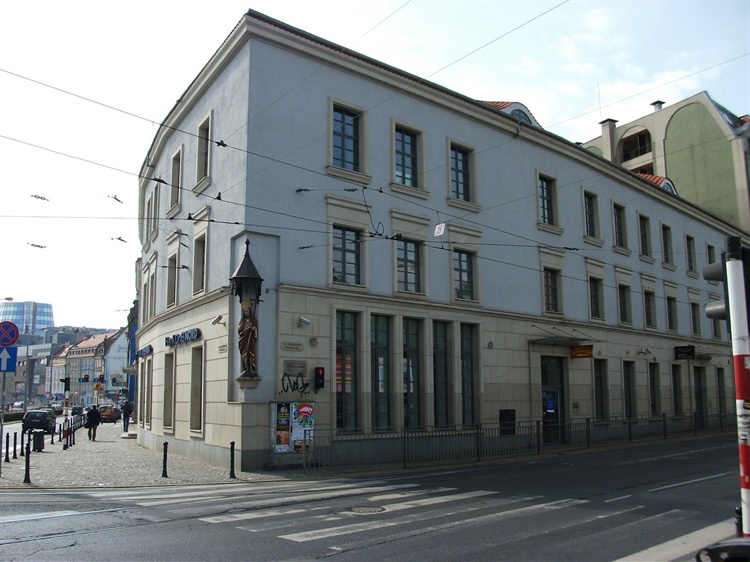 Charakterystycznym elementem budynku jest stojąca w narożu kopia gotyckiej figury Chrystusa Zmartwychwstałego. Jej oryginał znajduje się w Muzeum Architektury.