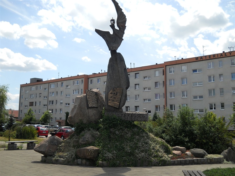 Odsłonięcia dokonano w przeddzień Święta Niepodległości, dnia 10 listopada 1991 roku. Monument zbudowany jest z kilku głazów. Na najwyższym z nich znajduje się stylizowany, mosiężny orzeł w koronie. Mniejsze zawierają daty związane z historią walk Polaków o niepodległość. Na pomniku mieszczą się również cztery pamiątkowe tablice. Główny napis rzucający się w oczy to: "Konstytucja, Niepodległość".