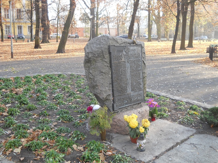 Na Placu Kościuszki, w centralnym jego punkcie, stoi pomnik ufundowany przez harcerstwo leszczyńskie. Na olbrzymim głazie znajduje się tablica pamiątkowa zawierająca nazwiska druhów, którzy stracili życie w czasie II wojny światowej. Nad tablicą umiejscowiony jest gołąb - symbol Ducha św. oraz ręce złożone do modlitwy. W górnej części tablicy, na środku, pomiędzy datami 1939-1945 mieści się krzyż harcerski. Pod nim widnieje napis: "W latach wojny na polach bitew i w miejscach kaźni z ZHP w Lesznie zginęli". Następnie w kolejności alfabetycznej wymienione są 43 nazwiska. Pod nimi czytamy: "Pamiętając o tych, którzy dla Polski oddali życie, tablicę tę wystawiło harcerstwo leszczyńskie".