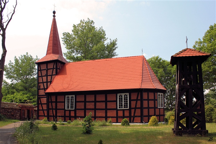 Świątynia pw. Podwyższenia Krzyża Świętego wzniesiona została w 1740 roku. Budowla posiada konstrukcję słupowo-ramową i tworzy salową bryłę bez wyodrębnionego prezbiterium. Szachulcowa wieża nakryta iglicowym hełmem usytuowana jest od frontu.
