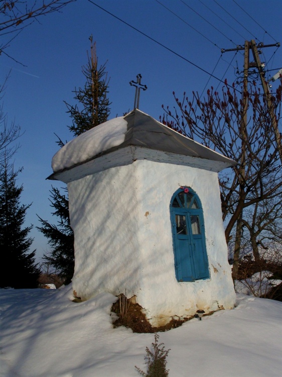 Kapliczka Najświętszej Maryi Panny została wzniesiona na błotnistym terenie. Wg podania, znajduje się ona w miejscu, gdzie dawniej był gród słowiański (lub miejsce kultu przedchrześcijańskiego). Kapliczka posiada obustronne drzwiczki, za którymi kryje się rzeźba Maryi Tronującej, wykonana prawdopodobnie w XVI wieku oraz małe ludowe krucyfiksy przynoszone przez okolicznych mieszkańców.