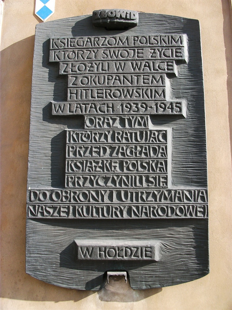 W walkach z okupantem wzięły udział liczne grupy zawodowe, których działania przybierały różne formy. Do walki przystąpili także polscy księgarze, ratując i dystrybuując polskie książki. Wielu z nich straciło życie. Ich pamięć czci tablica na murze przyrynkowej kamienicy nr 22/24 ufundowana przez Związek Bojowników o Wolność i Demokrację. Na tablicy znalazła się dedykacja o treści: "Księgarzom polskim, którzy swoje życie złożyli w walce z okupantem hitlerowskim w latach 1939-1945, oraz tym, którzy ratując przed zagładą książkę polską, przyczynili się do obrony i utrzymania naszej kultury narodowej - w hołdzie".