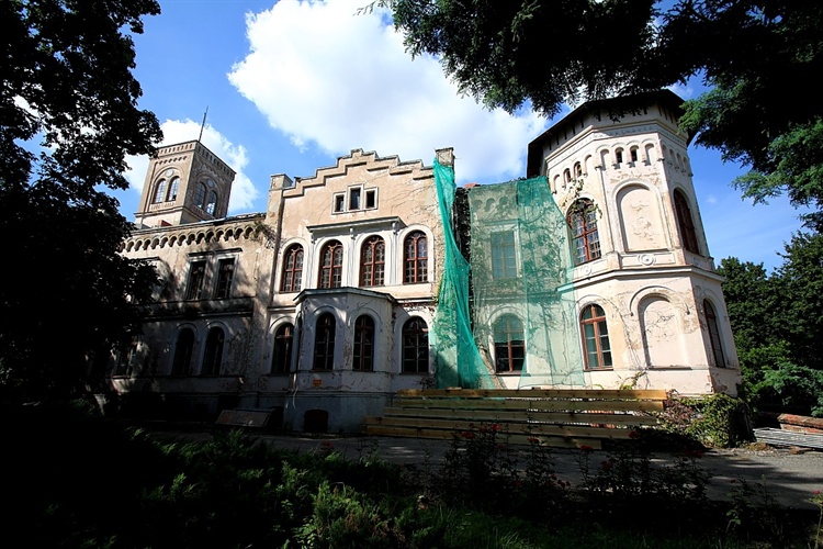 Pałac zbudowany został przez Emila Bielera w 1855 roku. Wzniesiony został w stylu neogotyckim, na planie nieregularnym, z kwadratową wieżą; wzorowany na mały zamek angielski. Pałac otacza park o powierzchni 15,74 ha z początku XIX wieku. Obecnie jest obiektem prywatnym.