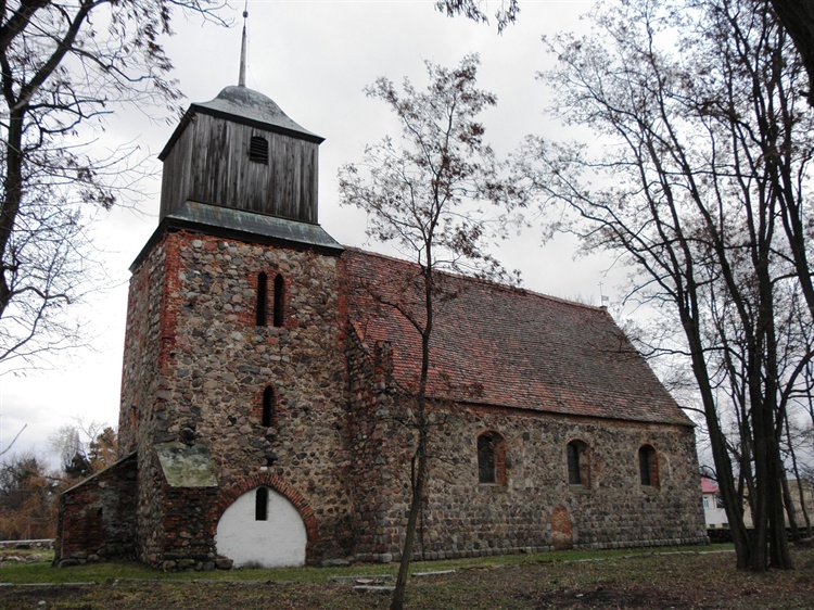 Pierwsza wzmianka o wsi pochodzi z 1240 r. i z pewnością już w XIII w. stanął tu kościół. Mimo wielokrotnego przebudowywania świątynia zachowała sporo elementów typowych dla okresu jej powstania (m.in. romańskie okna). Fachowcy uważają, że - obok katedry kamieńskiej - można tu oglądać doskonały przykład gotyzacji romańskiej budowli.