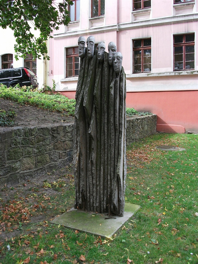 W pobliżu bydgoskiej katedry, przed dawną szkołą miejską od 2006 r. stoi ciekawa rzeźba nosząca nazwę "Śpiący rycerze". Wykonana została z kamienia i metalu. Na nietypowym cokole umieszczonych jest pięć głów - masek. Autorem rzeźby jest Jerzy Bereś.