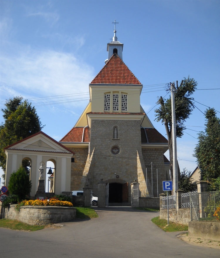 Parafia powstała w 1385 roku i początkowo nosiła nazwę Góra Królewska (Góra Regalis). Pierwszy drewniany kościół istniał do ok. 1660 roku, o czym wspomina Jan Długosz w "Liber beneficiorum". Kolejna, również drewniana świątynia wzniesiona została w 1683 roku i przetrwała aż do roku 1931, kiedy to została rozebrana ze względu na zły stan techniczny. Następnie wierni przez 20 lat korzystali z tymczasowego, drewnianego baraku do czasu budowy murowanego kościoła istniejącego do dzisiaj. Wzniesiono go w latach 1949-1951 z kamienia i cegły, zdobiąc elementami barokowymi. Na uwagę zasługuje chrzcielnica kamienna z herbem Potockich z przełomu XVII i XVIII wieku.