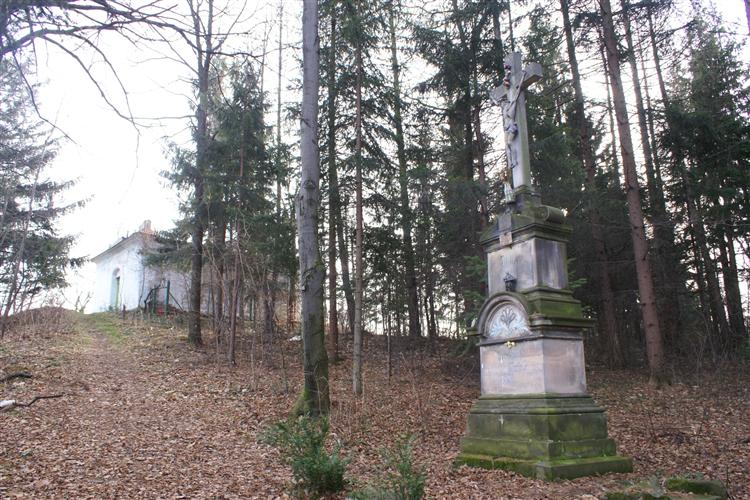 W 1731 r. ówczesny zarządca kamieniołomu S. Kachler zbudował tu kapliczkę poświęconą św. Annie. W późniejszym okresie dobudowano pustelnię, w której mieszkał pustelnik sprawujący opiekę nad kapliczką i wybudowaną wokół szczytu kalwarią. Przebudowana w 1836 r. kapliczka dotrwała do 1953 r. Ostatnim eremitą na Górze Krzyżowej był franciszkanin Robert Domsch. W 1946 r. został wysiedlony do Niemiec. Brak opieki oraz uruchomienie na zboczu góry kamieniołomu spowodowało zniszczenie pustelni i kapliczki.