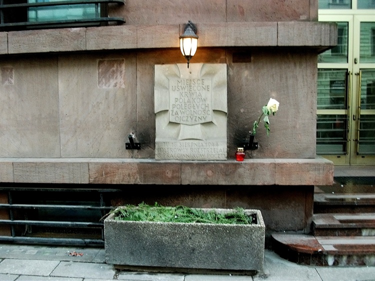 Na mapie warszawskich "Miejsc uświęconych krwią Polaków poległych za wolność Ojczyzny" znajduje się miejsce egzekucji wykonanej na warszawskich pocztowcach. Jest nim ściana budynku Poczty Polskiej przy ulicy Nowogrodzkiej. Tutaj 18 sierpnia 1944 r. hitlerowski pluton rozstrzelał 18 pracowników miejscowego urzędu pocztowego. Miejsce to upamiętnia jedna z tablic zaprojektowanych przez Karola Tchorka.