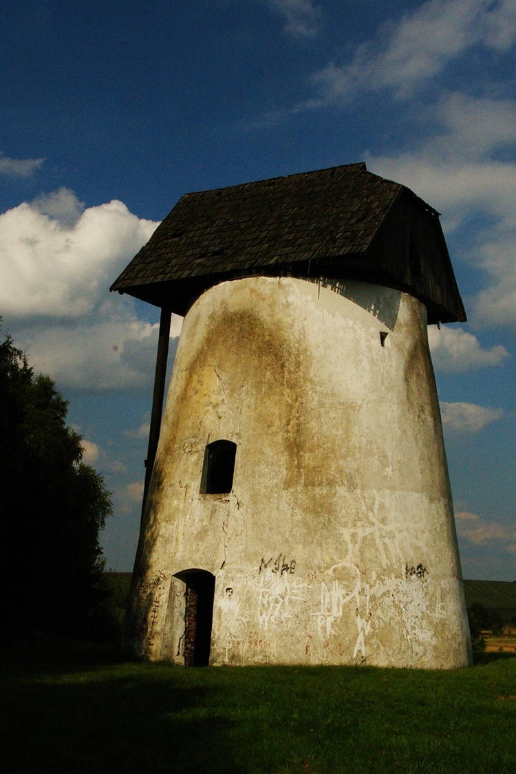 W odróżnieniu od większości polskich wiatraków ten krasociński nie jest drewniany, ale murowany. Wzniesiony został na początku XX w. na wzór wiatraków holenderskich. Zbudowany jest na planie koła, a zwężając się ku górze, kryje go drewniany, gontowy dach.
