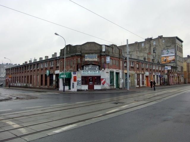 Budynek targowy przy zbiegu obecnych ulic Wojska Polskiego i Łagiewnickiej został wzniesiony w roku 1895 przez żydowskiego kupca Jojne Pilcera. Jest to niska zabudowa z czerwonej cegły wybudowana na planie litery "L". Poddasze pełniło funkcję mieszkaniowo-użytkową. Za budynkiem mieściło się targowisko. W okresie okupacji w domu targowym znajdowała się stołówka dla lekarzy Litzmannstadt Getto. Budynek od czasu powstania nie zmienił swojego kształtu.